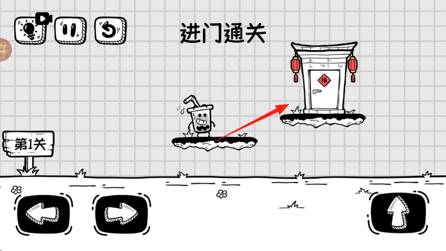 3、石门解锁变福字门,再次移动靠近门,进入门内,达成第1关通关条件。