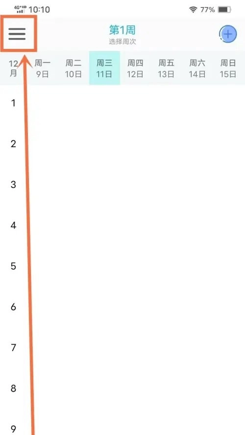 1、打开轻记课程表应用,在首页界面点击左上角的【三横线】图标。