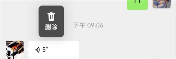 语音消息只能选择删除,现在还不支持转文字
