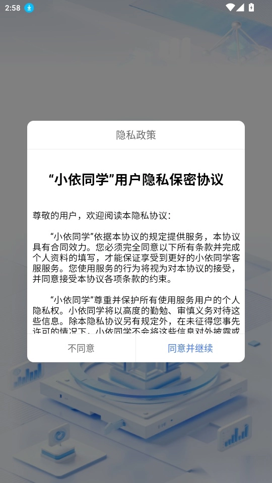 1.打开软件阅读“隐私政策”点击“同意并继续”进入