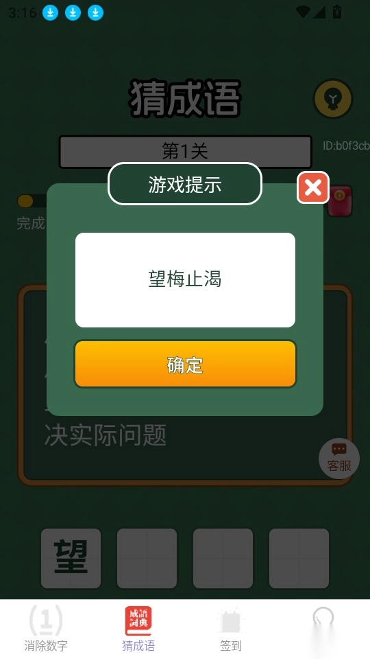 进入软件的消除数字界面后,在底部菜单栏找到“猜成语”功能按键并点击进入。
