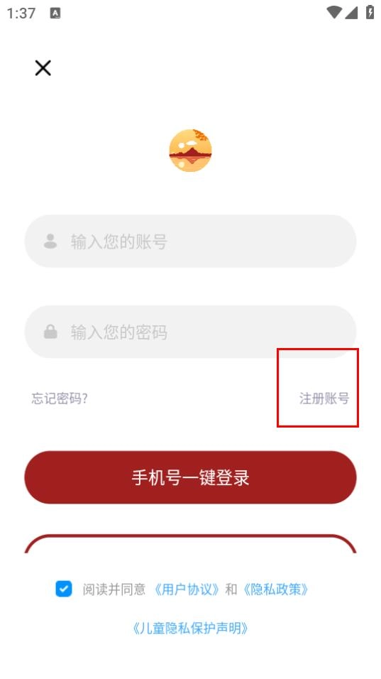 3、在登录页面,点击注册账号,进入注册账号页面。