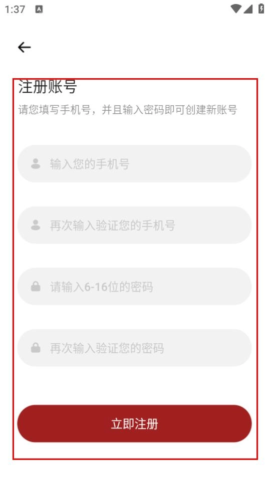 4、在注册账号页面,输入信息,点击立即注册,完成注册。