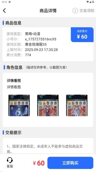 3、即便是新手也能轻松上手,买号流程简单清晰,小白几分钟就能完成交易,尽享账号交易的乐趣。