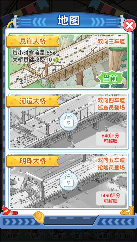 1、可以解锁的桥梁是很丰富的,大家可以进行自由查看。