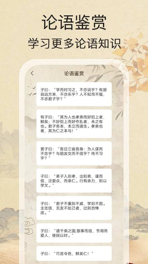 4、用户也能在线学习传统的论语知识,轻松便捷地进行鉴赏。