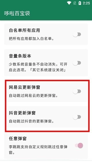 5、软件还支持网易云音乐、抖音更新弹窗的跳过。