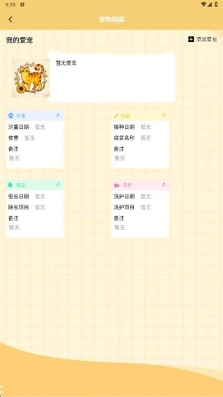 3、点击宠物档案添加信息,让你记录个人爱宠信息。