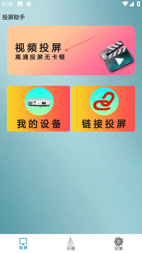 1、安装后,授权打开,进入【投屏】界面。