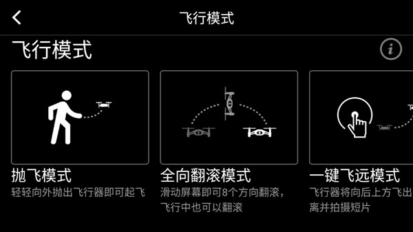 3、此外,这款软件具备飞行模式功能,其中涵盖了抛飞模式、全向翻滚模式、一键飞远模式等多种模式。