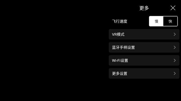 4、我们在这里还能开展飞行速度、VR模式、蓝牙手柄、WIFI等一系列设置操作。