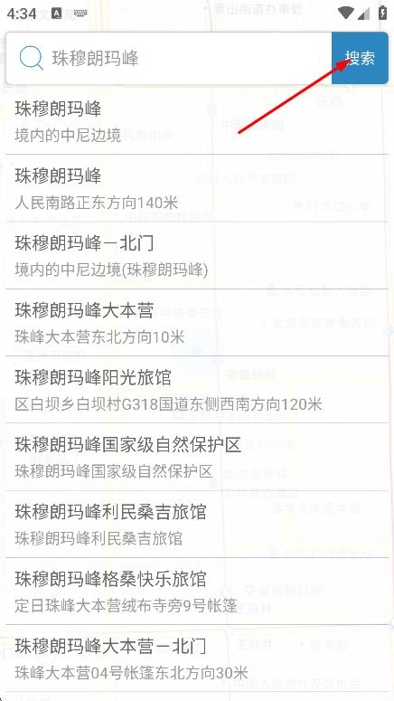3、输入珠穆朗玛峰后,点击搜索,查看搜索结果。