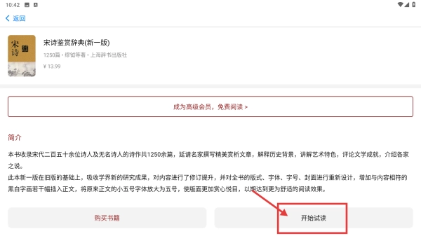 3、在书籍详情页,点击开始试读按钮,进入书籍阅读页。