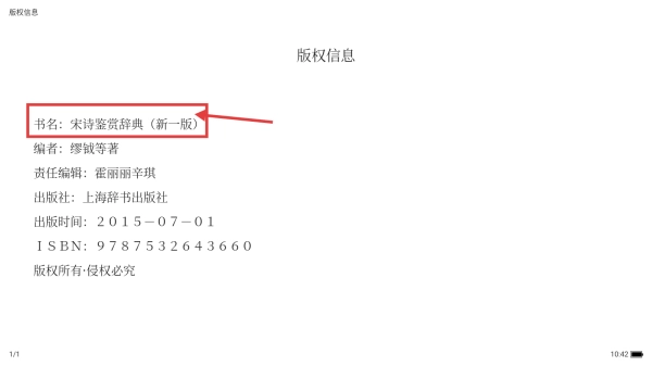 4、在阅读页,可查看书籍的版权信息书名、编者、出版社等及内容。