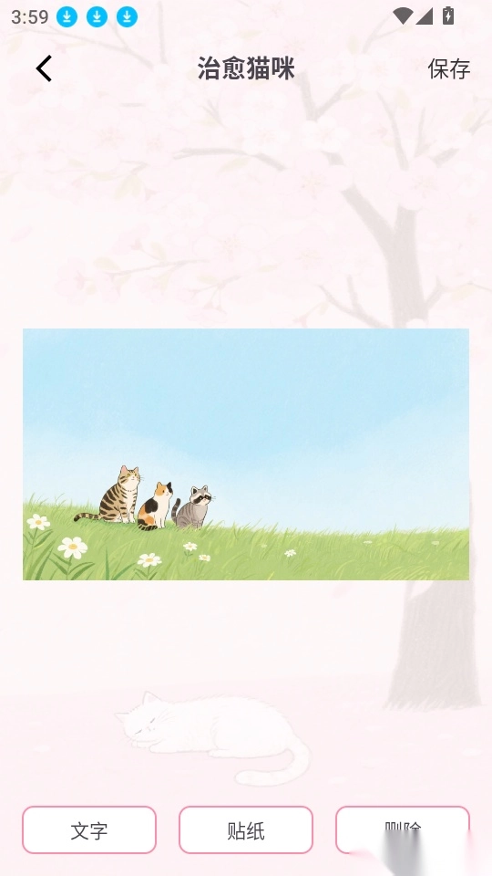 5、接着输入祝福语的文字内容,添加心仪的贴纸后,点击右上角的“保存”按钮,就能一键完成保存。