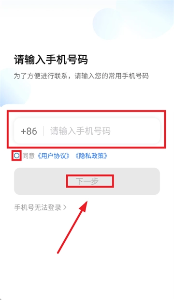 您只需输入手机号,勾选同意《用户协议》和《隐私政策》,然后点击下一步获取验证码,就能完成登录了。