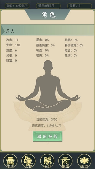 增加任务和历练是获得的灵石数量,灵石可以用来升级洞府。