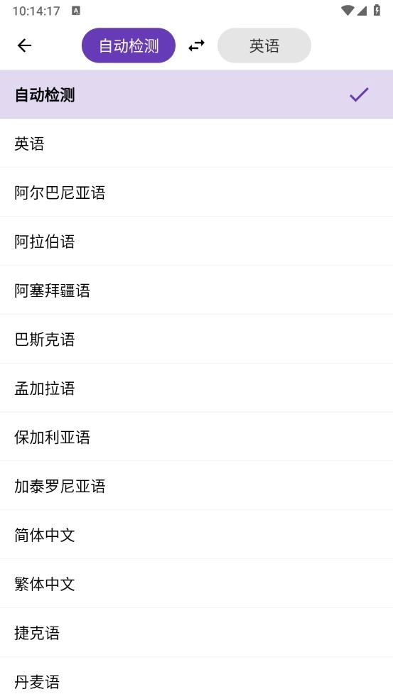 5、点击上方的语音按钮,就能依据自身需求挑选对应的翻译语言。