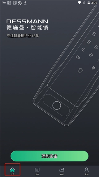 2、点击首页中,里面没有任何设备,点击添加设备。
