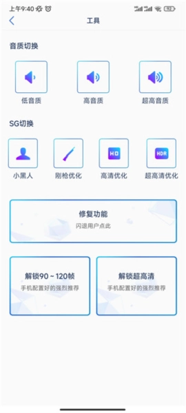 7、在这里你还可以对音质、SG等进行切换,能够解锁超高清、120帧画质;