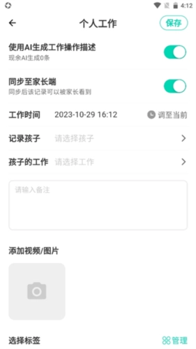 5、之后,填写相对应的信息即可,还可以直接同步至家长端,然后点击右上方的【保存】;