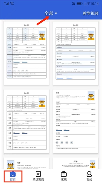 1、打开简历牛,在【首页】界面,选择上方【全部】选项,