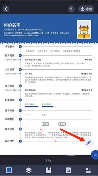 6、制作好个人简历后,选择右上角【导出】选项,