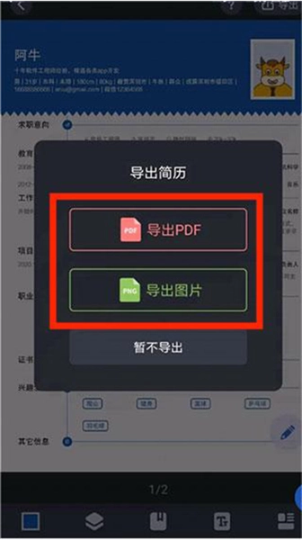7、支持导出PDF和导出图片两种格式,用户根据需求进行选择即可,以上就是把简历牛里面的简历导出来的方法了。