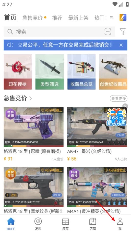 1、打开网易BUFF,点击界面右下角的我,进入个人页面。
