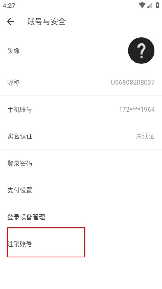 4、在账号与安全页面,可找到注销账号选项进行相关操作。