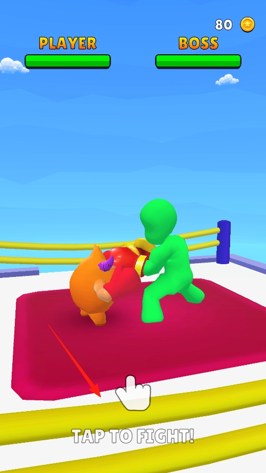 2、点击屏幕触发战斗,与boss对抗,把握时机出拳击打,削减对手血量,体验点击战斗玩法。