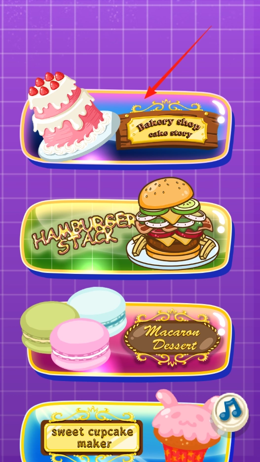 1、点击Bakery shop cake story进入蛋糕制作,选择该模式开启烘焙流程,体验不同甜品主题机制。