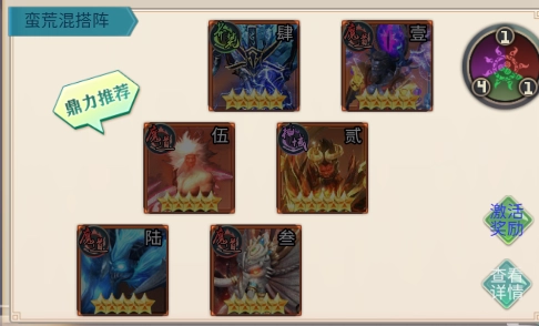2、收集组合内的神兽可完成激活,提升图鉴值;若上阵羁绊神兽,还能增强特定方向的战斗属性