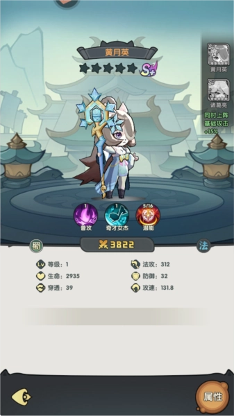 英雄的技能类型涵盖主动技、被动技与合击技,部分特定的英雄组合能够触发羁绊效果,例如“三国阵营”组合就会带来增伤加成。