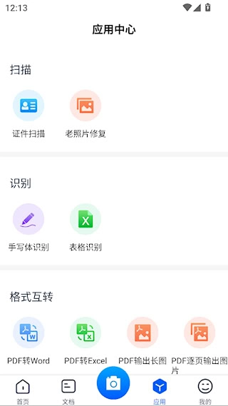 1、打开拍照文字扫描,进入首页,点击【应用】