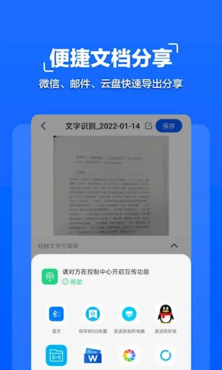 1、拍照文字扫描具备高精度OCR文字识别能力,可通过摄像头直接提取纸质文档、书籍或图片中的印刷体和手写体文字。识别结果支持智能分段和格式保持,并可导出为可编辑的Word或TXT文本,便于后续修改和使用。