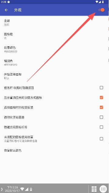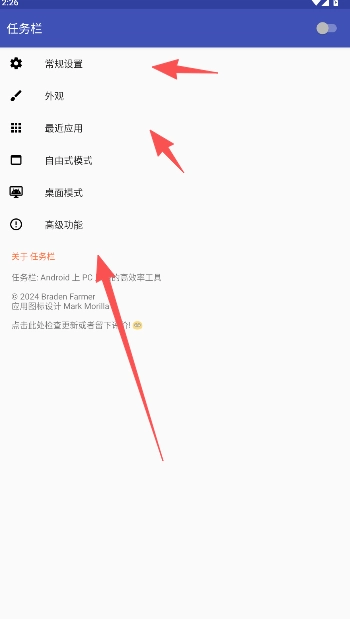 《任务栏taskbarv3.6 安卓版》是一款专为安卓系统打造的布局工具,拥有多样的配置功能,能让用户自由调整桌面系统的布局样式,打破了传统的置顶、侧边等固定显示模式的限制。用户在使用时,可依据个人使用习惯灵活尝试各类布局参数的设置,只需点击对应开关就能快速生效,整个过程无需多余操作,便捷实用,期待您的体验!
