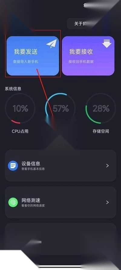 1.打开乐元换机互传助手,点击我要发送的选项。
