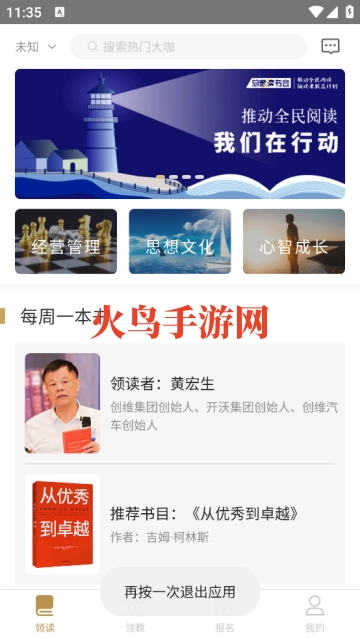 总裁读书会是一款专注于优质阅读的电子读书应用,这里汇聚了众多由知名企业家及各行业权威人士推荐的书籍,丰富的内容能让用户尽情沉浸在知识的世界里,拓宽视野、增长见识。