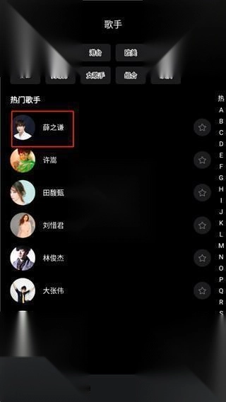 2、选择自己喜欢的歌手;