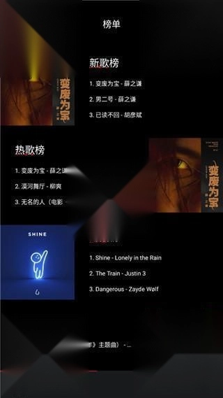 6、当然啦,要是你一时不知道该听什么歌,也可以点击首页的榜单区域,那里会为你呈现新歌榜、热歌榜、欧美榜等各类不同的排行榜单供选择。
