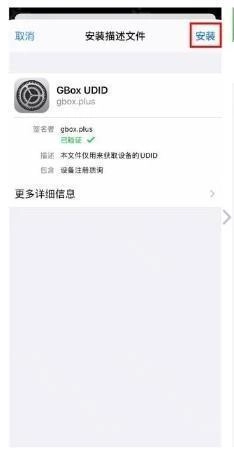 点击右上角“安装”,安装后会自动跳转回GBox;