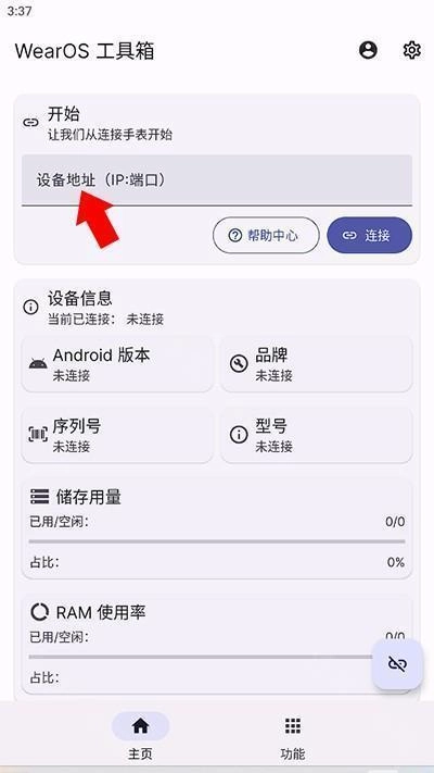 4、接着安装WearOS工具箱,要保证手表与手机连接到同一个Wi-Fi网络。在工具箱的首页,输入“通过WLAN调试”下方所显示的IP地址和端口,这样就能完成连接了。