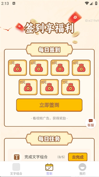 3. 点击页面下方的‘签到’,即可看到每日签到、每日任务等功能;