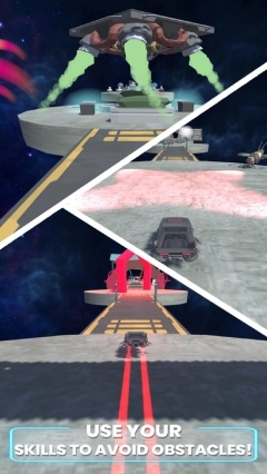 2、在太空中飙车,不断闯过各种关卡,最终到达赛道的终点;