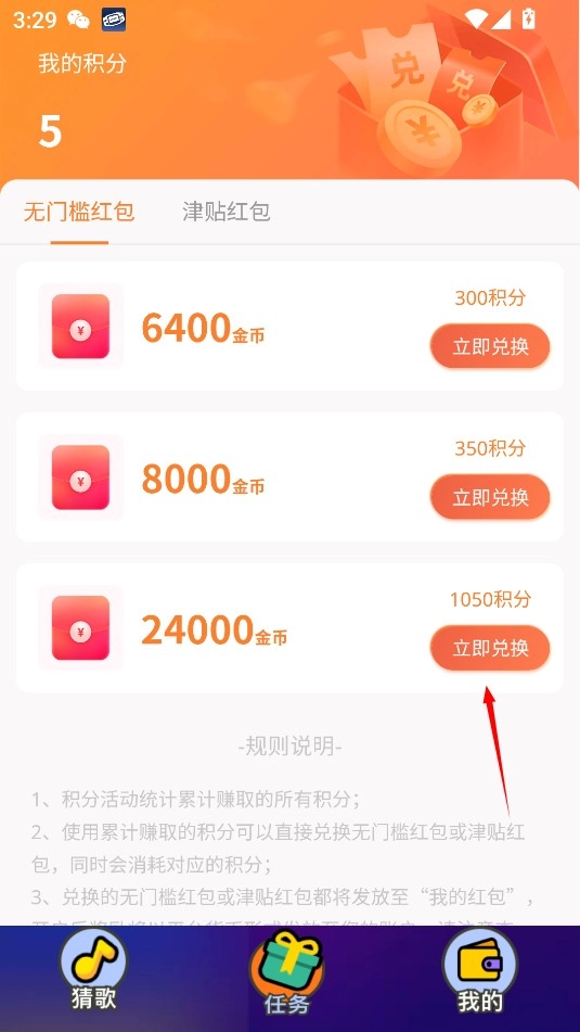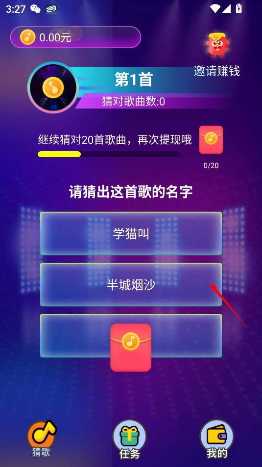 3、通过听歌曲片段来猜歌名获取红包奖励