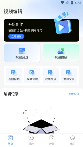 2、首页编辑功能多多,支持视频的编辑软件,支持视频裁剪。