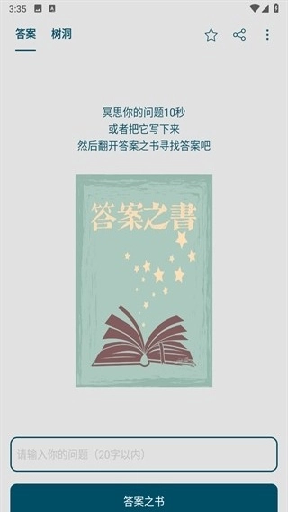 2. 打开答案之书页面,输入你想询问的问题,随后点击答案之书选项。