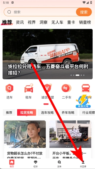 2、进入后,点击底部未登录。