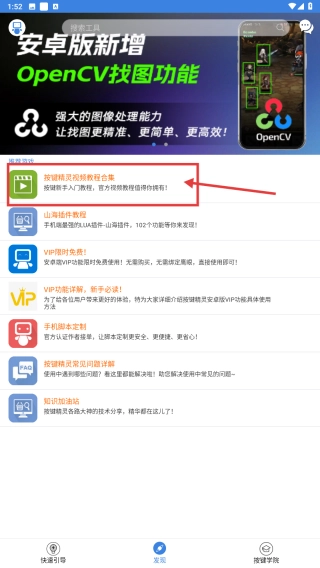 2、在发现页面,点击按键精灵视频教程合集条目,进入教程列表页面。